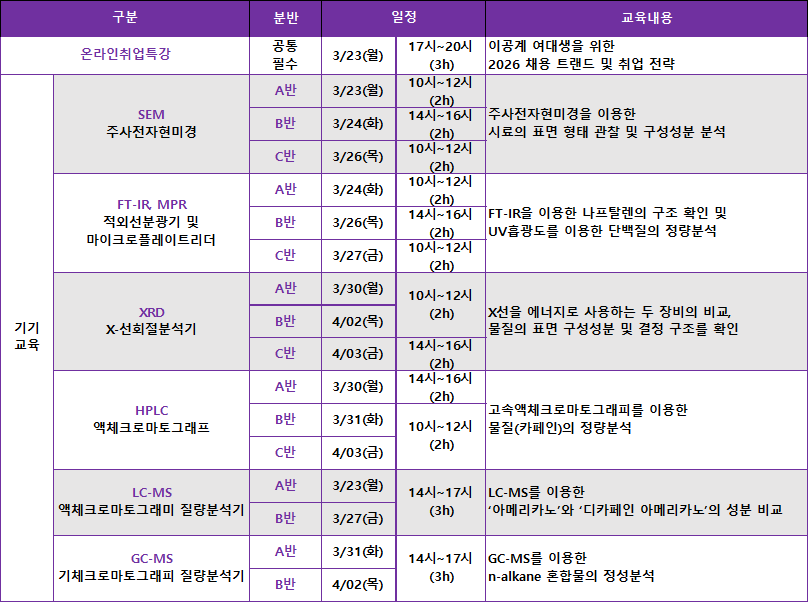 교육기간 : 2026.3.23.(월)~4.3(금) (기기별 2~3시간)